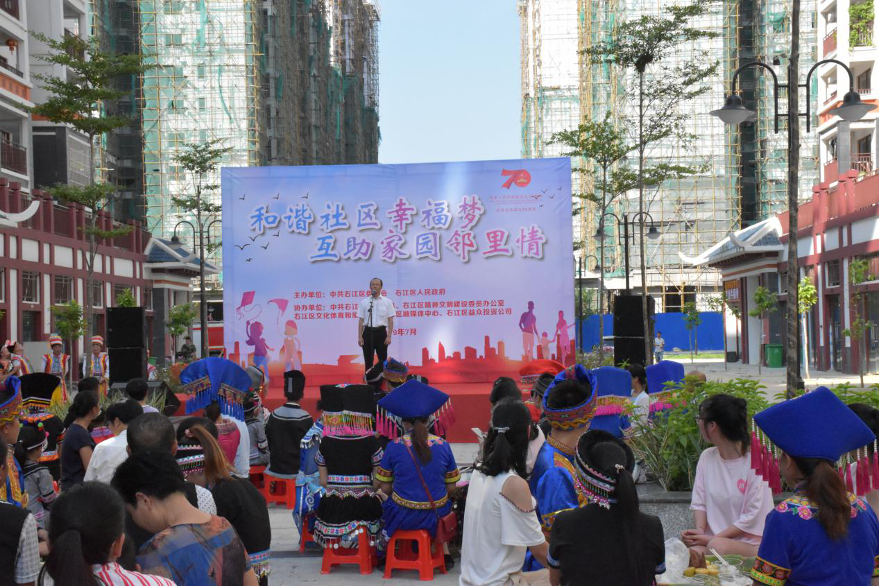 ??????????? 2019年7月27日,為慶祝新中國(guó)成立70周年,紀(jì)念百色起義90周年,由區(qū)委宣傳部組織的2019百色市右江區(qū)《我和我的祖國(guó)》大型快閃表演活動(dòng)分會(huì)場(chǎng)暨第二屆“老鄉(xiāng)家園”鄰里節(jié),在老鄉(xiāng)家園-迎龍易地扶貧搬遷安置小鎮(zhèn)舉行。右江區(qū)區(qū)委常委、宣傳部部長(zhǎng)、區(qū)人民政府副區(qū)長(zhǎng)王世凡等,以及區(qū)直相關(guān)部門(mén)領(lǐng)導(dǎo)和公司有關(guān)領(lǐng)導(dǎo)參加此次活動(dòng)。