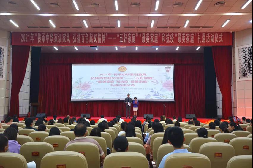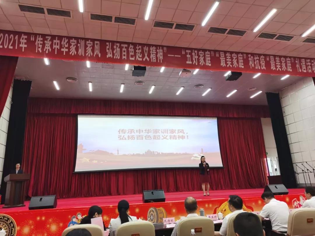 ????????為弘揚(yáng)中華民族家庭美德、樹(shù)立良好家風(fēng)、激勵(lì)抗疫精神,落實(shí)全國(guó)婦聯(lián)、自治區(qū)婦聯(lián)關(guān)于開(kāi)展尋找“最美家庭”活動(dòng)精神。4月30日,由百色市婦聯(lián)、市文明辦、市總工會(huì)、市教育局聯(lián)合舉辦,廣西益眾文化傳媒有限公司承辦的2021年“傳承中華家訓(xùn)家風(fēng)?弘揚(yáng)百色起義精神”——“五好家庭”“最美家庭”和抗疫“最美家庭”禮遇活動(dòng)儀式在右江區(qū)禮堂舉行。來(lái)自2020年“五好家庭”“最美家庭”和抗疫“最美家庭”代表、“最美家庭”禮遇愛(ài)心單位代表以及百色市市直機(jī)關(guān)、企事業(yè)單位和社會(huì)各界代表等共計(jì)200多人參加活動(dòng)。