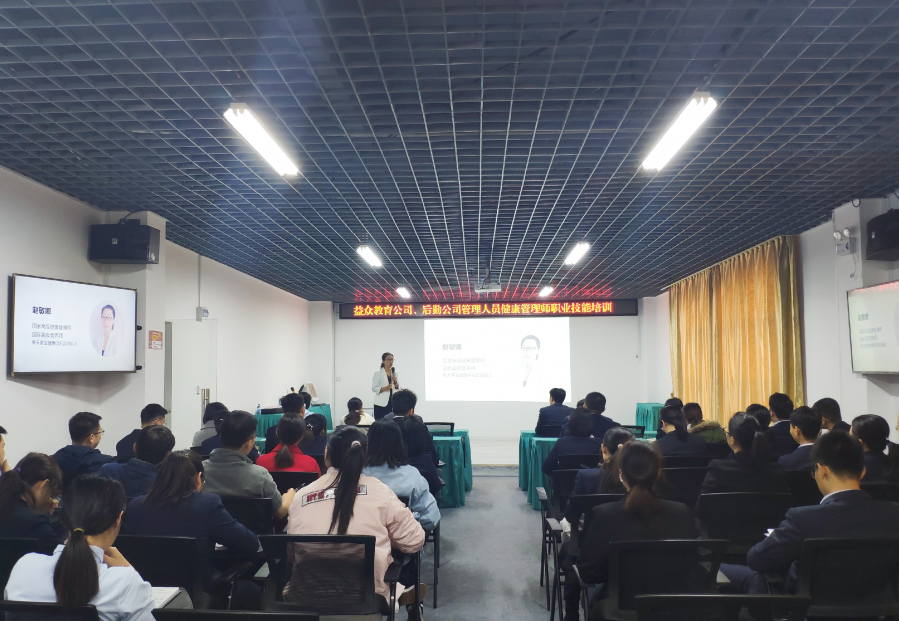 ????????為加強(qiáng)職工隊(duì)伍建設(shè),提升專業(yè)技能,培養(yǎng)專業(yè)人才,11月5日,益眾教育公司、益眾后勤公司聯(lián)合開(kāi)展了健康管理師職業(yè)技能培訓(xùn),50余名管理人員參加。