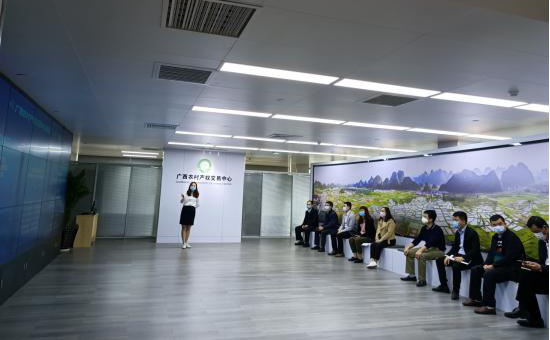 考察組一行先到北部灣產(chǎn)權(quán)交易所集團詳細了解其在農(nóng)村產(chǎn)權(quán)交易中心建設(shè)與推廣取得的成果與經(jīng)驗,并就項目涉及的政策支持、合作與運營模式、投融資形式、機構(gòu)設(shè)置等問題,與北部灣產(chǎn)權(quán)交易所集團副總經(jīng)理夏雋帶領(lǐng)的團隊進行深入探討。隨后,實地參觀了貴港市覃塘區(qū)農(nóng)村產(chǎn)權(quán)交易中心,各局辦負責人及公司相關(guān)人員分別就各自所涉及的工作和業(yè)務(wù)與貴港市覃塘區(qū)政府辦、農(nóng)業(yè)農(nóng)村局等工作人員進行學習交流。