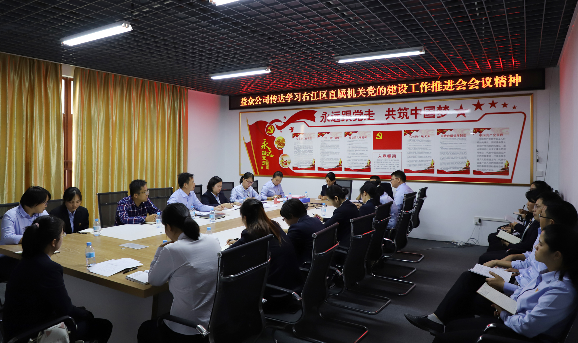 ????????會議要求,一是要狠抓思想建設(shè),注重激發(fā)全員主動參與黨建的積極性。強化黨員身份意識,自覺在思想上、行動上同右江區(qū)委保持高度一致,發(fā)揮主觀能動性,積極主動參與黨建工作;二是要狠抓政治建設(shè),注重加強國有企業(yè)黨建各項工作,堅決在黨的領(lǐng)導(dǎo)下落實開展各項經(jīng)濟指標(biāo)建設(shè)工作;三是要狠抓規(guī)范化建設(shè),提升企業(yè)職工的規(guī)范化意識;四是要狠抓特色建設(shè),注重涵養(yǎng)“紅色文化浸潤、紅色基因傳承”黨建精神品質(zhì),總結(jié)挖掘國有獨資企業(yè)黨建內(nèi)涵;五是要狠抓法治建設(shè),確保企業(yè)各項經(jīng)營活動合法合規(guī)。