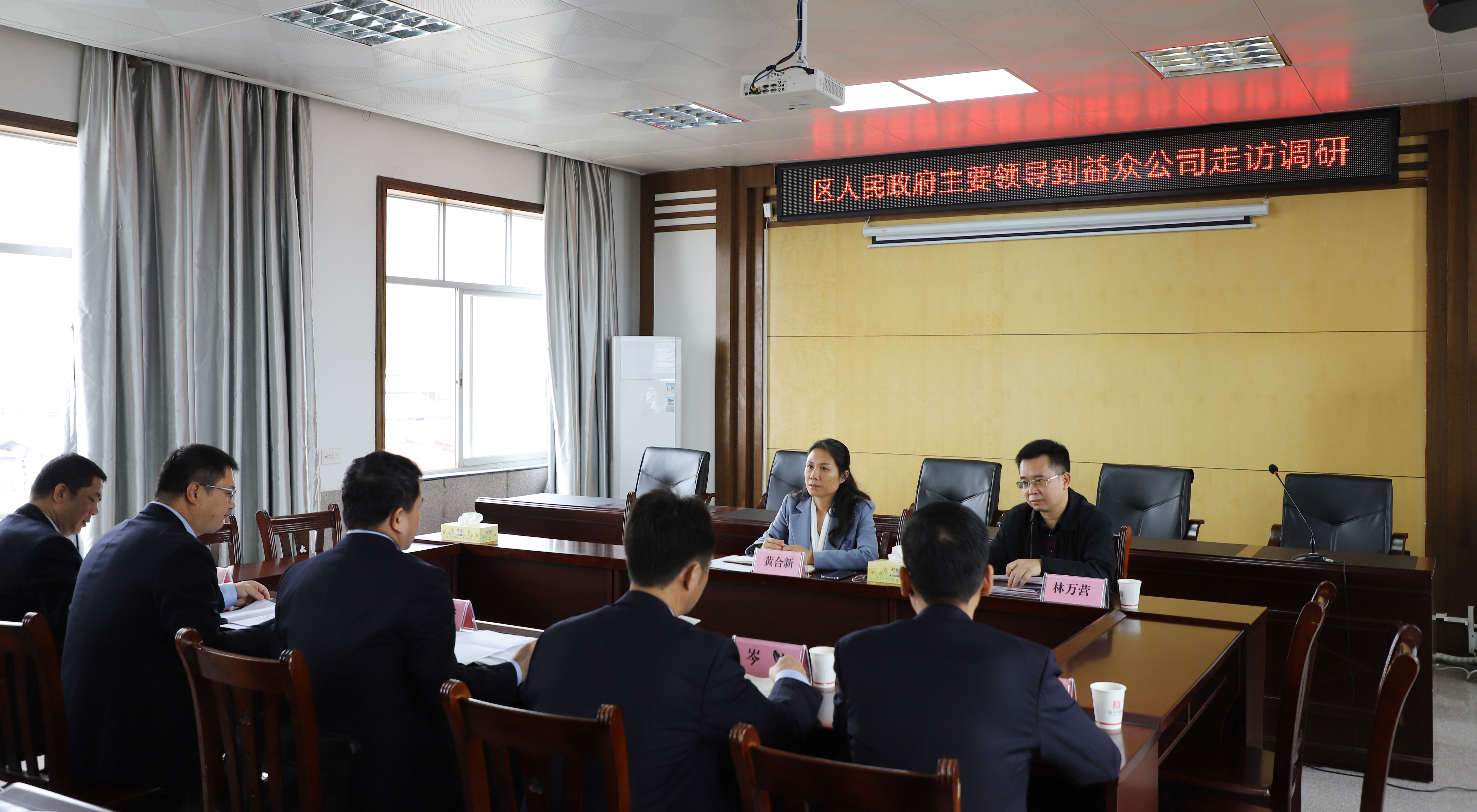 ????????11月18日,右江區(qū)委副書記、區(qū)人民政府代區(qū)長黃合新到益眾公司調(diào)研指導(dǎo)工作,與公司領(lǐng)導(dǎo)班子座談,聽取有關(guān)工作匯報,協(xié)調(diào)解決企業(yè)發(fā)展難題。