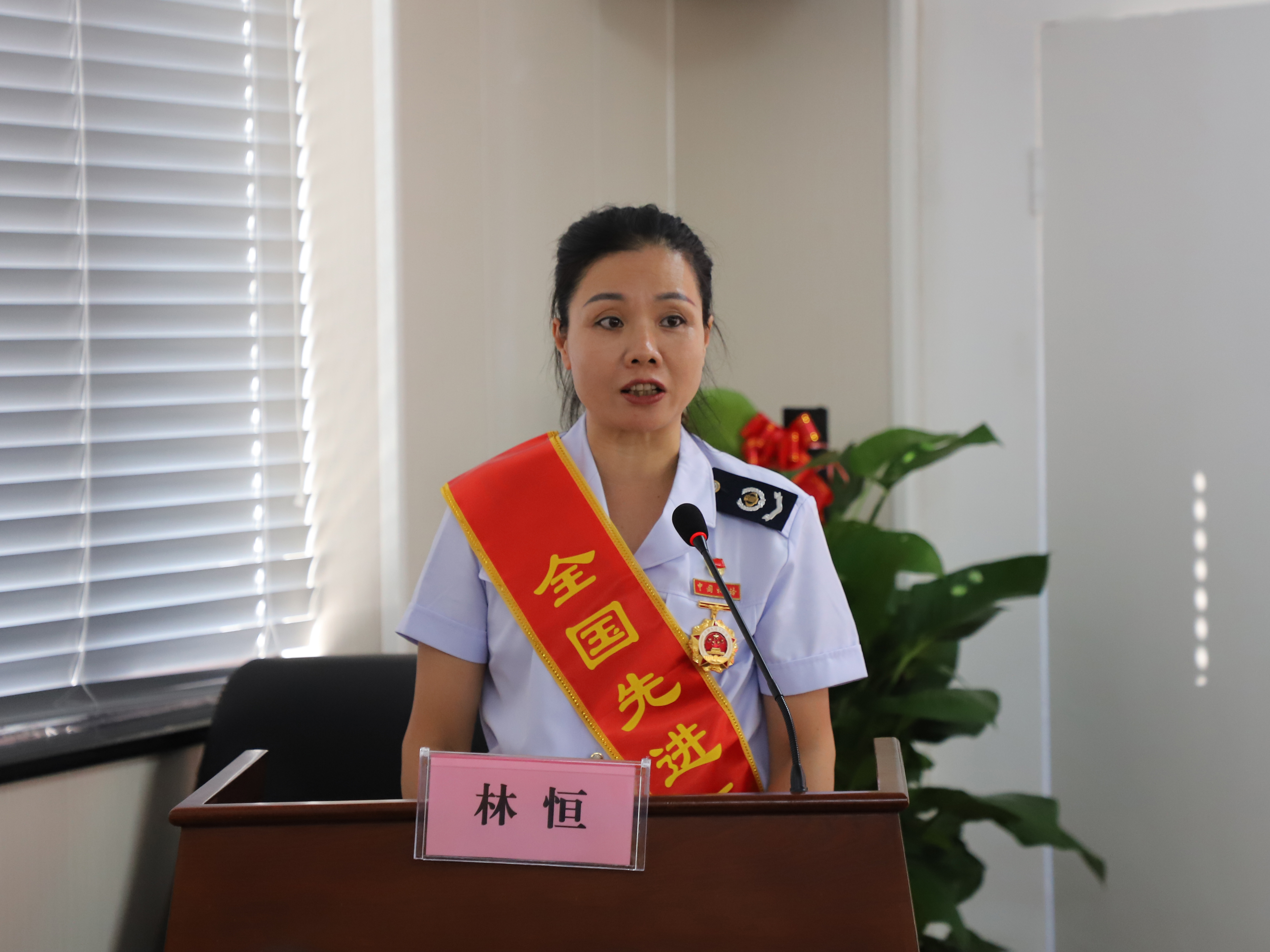 林恒同志以《三十七載從稅路,無(wú)悔奉獻(xiàn)守初心》為題作宣講報(bào)告
