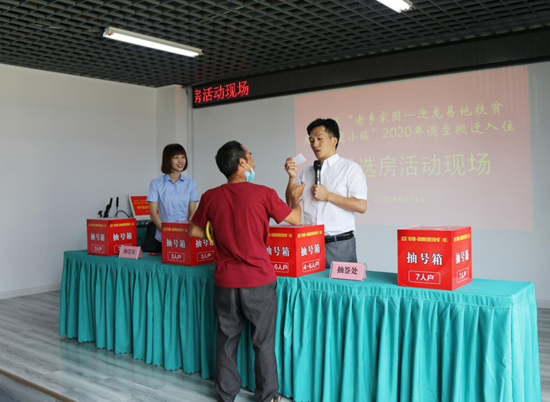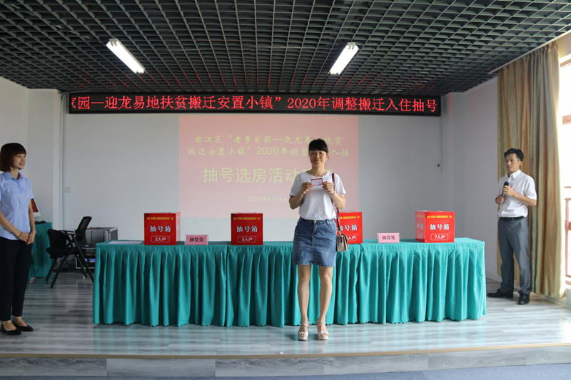 6月14日,右江區(qū)“老鄉(xiāng)家園—迎龍易地扶貧搬遷安置小鎮(zhèn)”2020年調(diào)整搬遷入住工作拉開(kāi)了序幕。當(dāng)日上午,符合本次新調(diào)入搬遷對(duì)象的搬遷戶在益眾公司老鄉(xiāng)家園(益眾.尚城商業(yè)樓B1棟)辦公區(qū)舉行現(xiàn)場(chǎng)抽號(hào)選房、簽約手續(xù)。