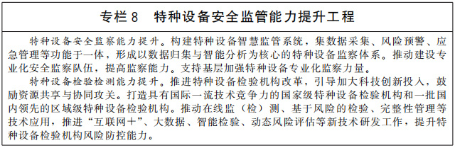 強(qiáng)化特種設(shè)備安全風(fēng)險(xiǎn)監(jiān)控體系建設(shè)。優(yōu)化特種設(shè)備監(jiān)管信息化建設(shè)基礎(chǔ)和應(yīng)用環(huán)境,推動(dòng)國(guó)家與地方監(jiān)管數(shù)據(jù)互聯(lián)互通,增強(qiáng)數(shù)據(jù)分析和信用管理功能,完善全國(guó)統(tǒng)一的特種設(shè)備信息公示查詢系統(tǒng)。加強(qiáng)特種設(shè)備風(fēng)險(xiǎn)預(yù)警與應(yīng)急處置能力建設(shè),提高安全風(fēng)險(xiǎn)識(shí)別和防控能力。推動(dòng)特種設(shè)備使用單位開展風(fēng)險(xiǎn)分級(jí)管控,從源頭上系統(tǒng)辨識(shí)風(fēng)險(xiǎn)、防控風(fēng)險(xiǎn)。完善生產(chǎn)單位、檢驗(yàn)檢測(cè)機(jī)構(gòu)和人員資格信息等特種設(shè)備基礎(chǔ)數(shù)據(jù)庫(kù)。以電梯、氣瓶和移動(dòng)式壓力容器、叉車等為重點(diǎn),建立健全特種設(shè)備質(zhì)量安全管理追溯體系。推動(dòng)特種設(shè)備生產(chǎn)企業(yè)加大研發(fā)投入,建立科學(xué)嚴(yán)密、反應(yīng)及時(shí)的風(fēng)險(xiǎn)防范系統(tǒng)。完善鍋爐安全、節(jié)能、環(huán)保三位一體的監(jiān)管體系,以實(shí)現(xiàn)碳達(dá)峰碳中和目標(biāo)為導(dǎo)向,進(jìn)一步提升鍋爐節(jié)能環(huán)保水平。