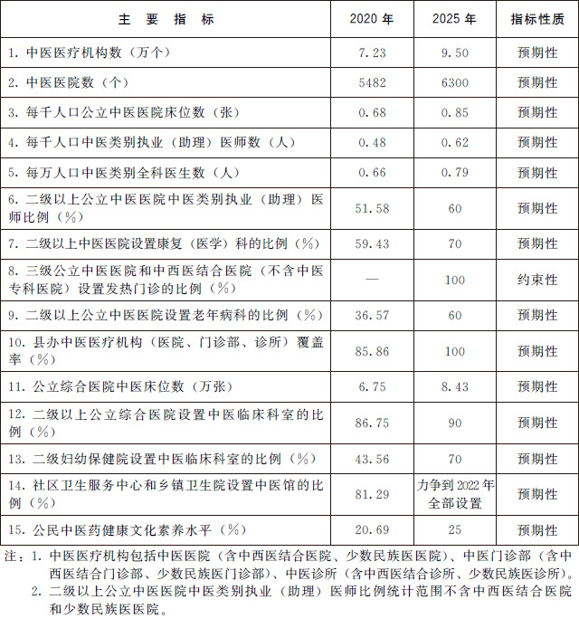 (三)發(fā)展目標(biāo)。到2025年,中醫(yī)藥健康服務(wù)能力明顯增強(qiáng),中醫(yī)藥高質(zhì)量發(fā)展政策和體系進(jìn)一步完善,中醫(yī)藥振興發(fā)展取得積極成效,在健康中國(guó)建設(shè)中的獨(dú)特優(yōu)勢(shì)得到充分發(fā)揮。