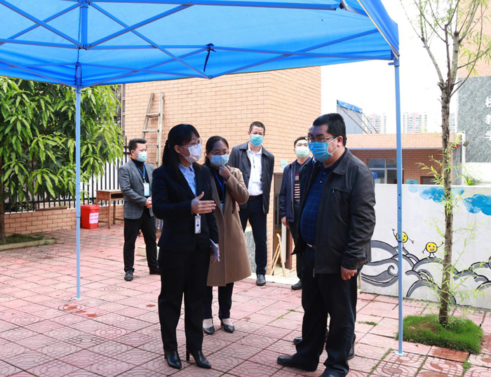 4月3日下午,右江區(qū)政協(xié)主席周文任到我公司下屬益眾托管公司第十小學(xué)校區(qū)檢查開學(xué)前疫情防控的準備工作情況。右江區(qū)委常委、宣傳部部長、副區(qū)長王世凡,區(qū)政協(xié)辦公室主任王天躍、區(qū)教育局局長蘇祖勝、第十小學(xué)及益眾公司相關(guān)負責人陪同檢查。